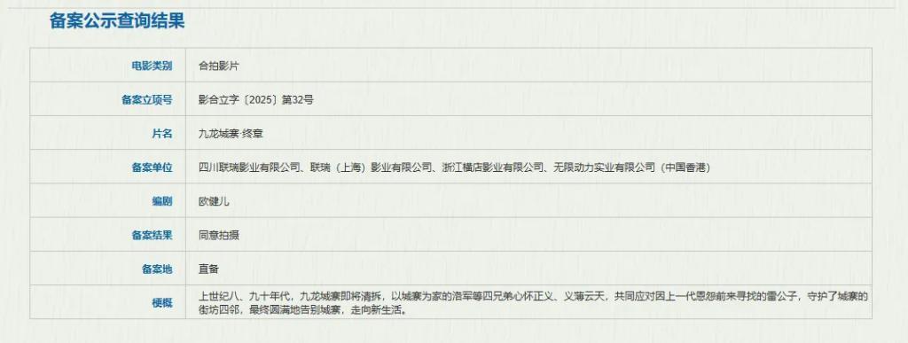 凭证爽快先容,《九龙城寨之围城》续集《九龙城寨 · 终章》接续以城寨为家的洛军等四兄弟为主角,全新邪派雷令郎也将登场。