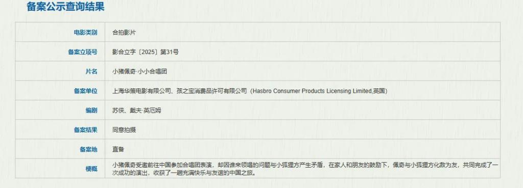 如今,除了最新立项的《小猪佩奇 · 小小齐唱团》,《小猪佩奇 · 好意思满假期》也野心在不久后上映,这两部电影都是由华策与孩之宝联接推出。